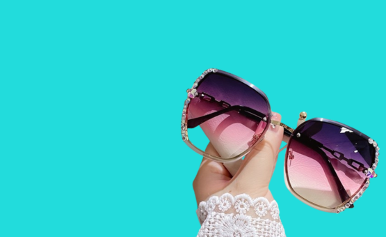 Woman Rimless Rhinestone Sunglasses; Women Oversized Rimless Gradient Stylish Design Oversized Sunglasses