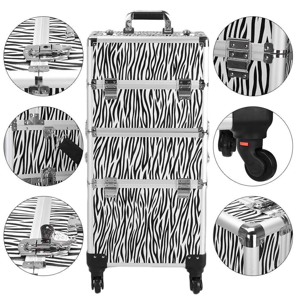 3. Overall Trolley Makeup Case with Handle and Casters Dimensions: (14.17 x 9.45 x 40.94)" / (36 x 24 x 104)cm (L x W x H)