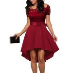 Product category: 1* dressSkirt type: large swing typeColor: wine red, blue, blackSize: S, M, L, XL, XXLWaist type: high waistStyle Type: Temperament CommuterCombination form: single pieceSkirt length: mid skirtCollar type: one word collarPopular elements: stitching, irregular, hollowFabric Name: LaceSleeve type: conventional sleeveClothing style: Europe and AmericaApplicable age: adultsleeve length: short sleeveSkirt Category: DressStyle: sexyPackage includes: 1* dressSize Bust Waist LengthS 88cm 68cm 114cmM 92cm 72cm 115cmL 96cm 76cm 116cmXL 100cm 80cm 117cmXXL 104cm 84cm 118cmWarm prompt: There is 2-3% difference according to manual measurement. please check the measurement chart carefully before you buy the item. Please note that slight color difference should be acceptable due to the light and screen.