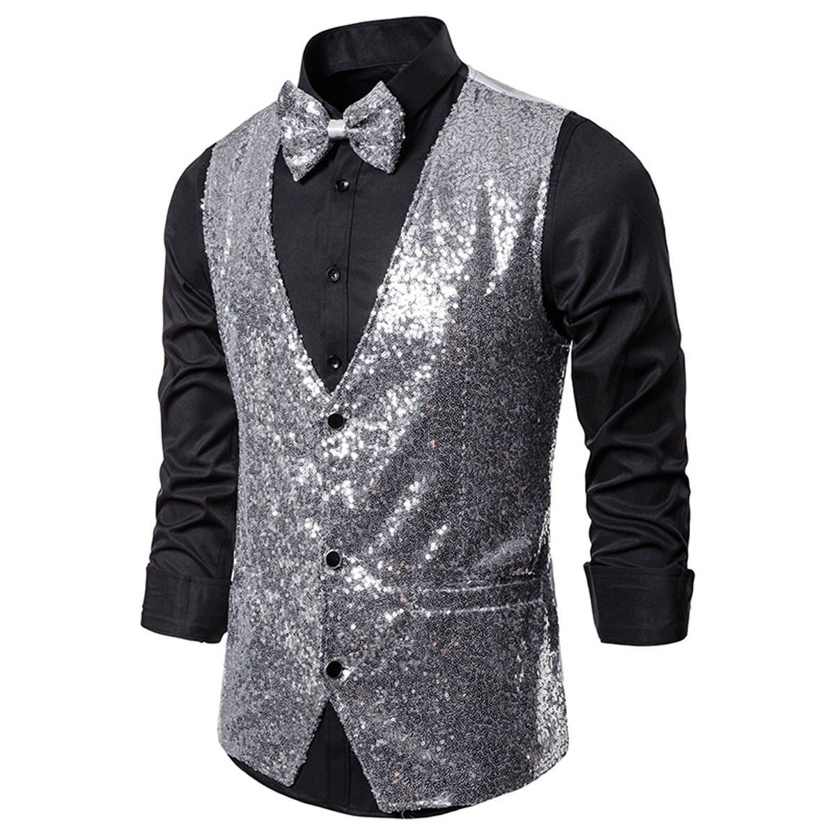 Occasions For: This mens glitter vest is great with any dress pants, dress shirt, suit, tuxedo for a sharp classy look, suitable for wedding, prom, party, disco, dance, stage performance, nightclub, dating, show, hip hop, Halloween, Christmas and so on.